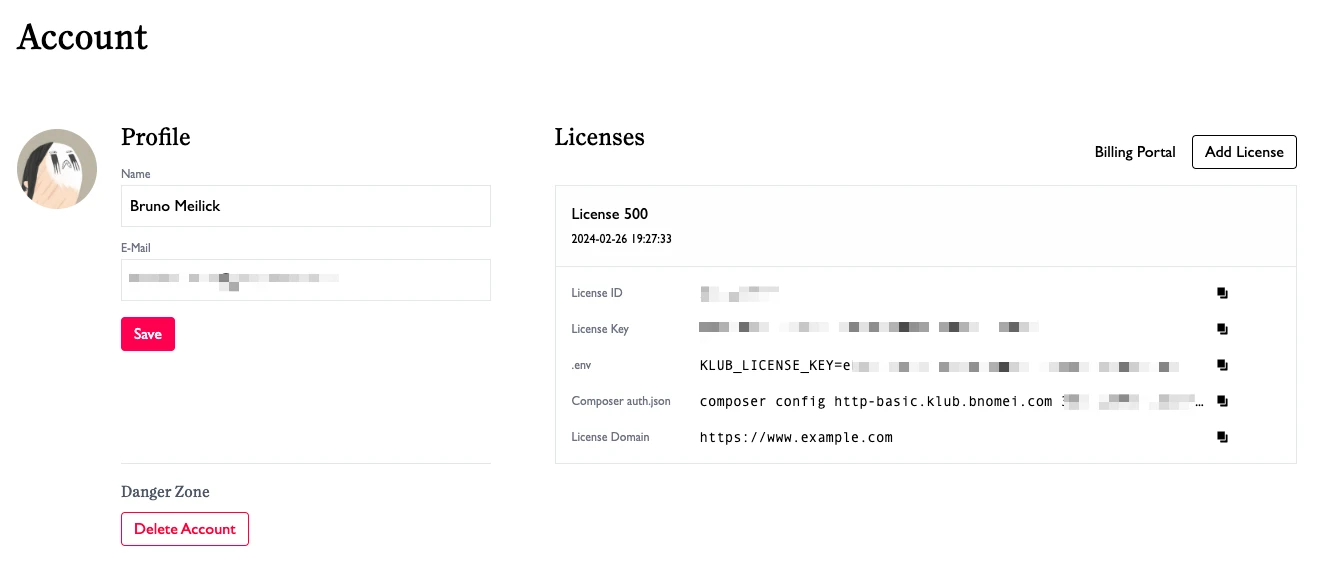 'bnomei.klub.license.domain' => 'https://www.example.com', // production URL