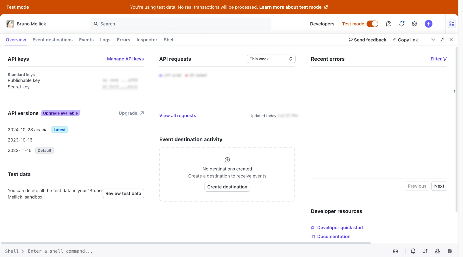 Ensure you are in Test Mode and retrieve your Stripe Secret Key from the Stripe Dashboard.