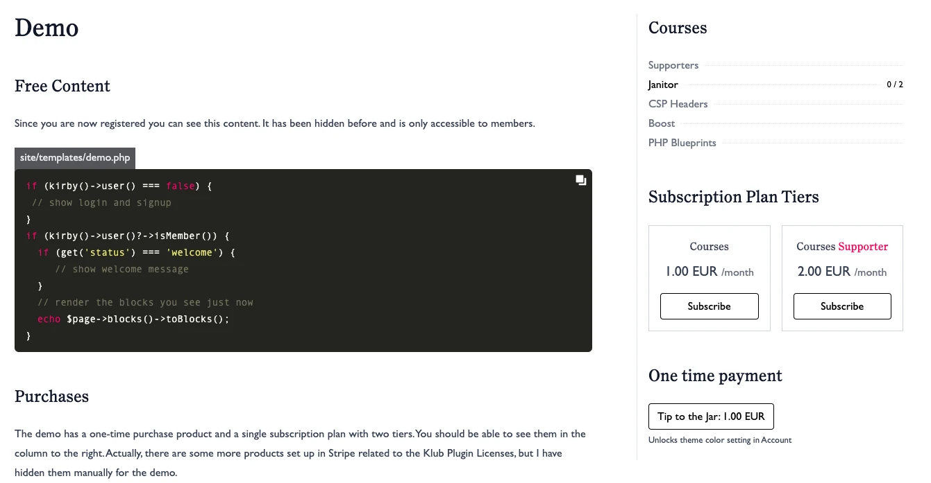The Klub website has a demo that allows you to try out purchases and unlocking of content yourself.